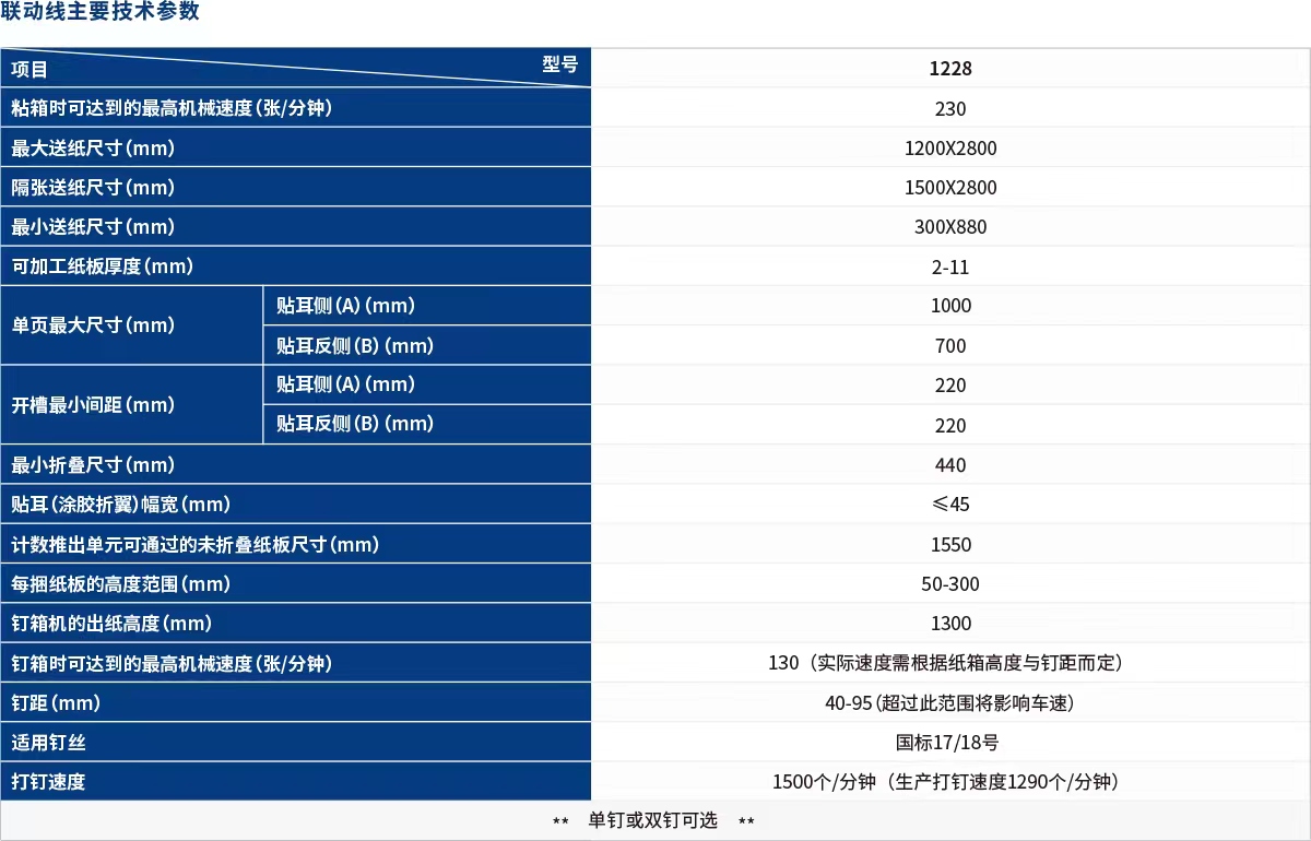 • ③釘箱單(dan)元:德(dé)國(guo)高(gao)速(su)擺動(dòng)式(shi)釘頭技(ji)術(shù),釘頭速(su)度可(kě)達1290釘次/分(fēn)鍾;跟蹤式(shi)打釘技(ji)術(shù),高(gao)速(su)釘箱過(guo)程(cheng)中(zhong)避免釘破面紙(再生(sheng)紙、厚紙闆等(deng))